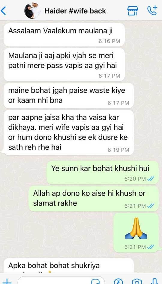 Haaji Barkat Ali Khan Ji has helped me to solve health issues. I was unable to know the reason for my deteriorating health. He suggested remedies that I have performed to recover.