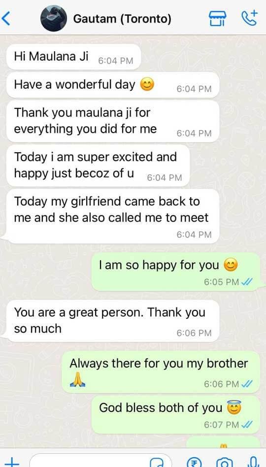 CanadaFor unnecessary delays in my marriage, I have taken suggestions from Haaji Barkat Ali Khan Ji. He suggested Wazifa that brings good marriage proposals for me and now I am happily married.